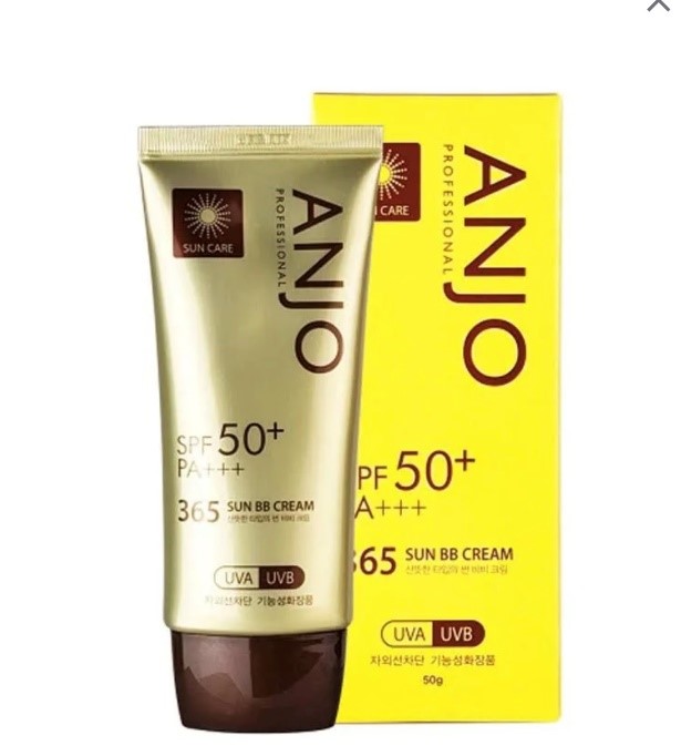 ANJO 365 Sun BB Cream is a Korean beauty product that functions as both a sunscreen and a makeup base, providing SPF 50+ PA+++ protection against UVA and UVB rays. It offers a light, non-greasy texture and contains moisturizing ingredients like hyaluronic acid, shea butter, and green tea extract to hydrate, soothe, and soften the skin while acting as a makeup primer.