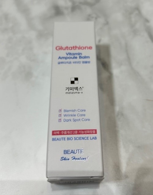 The Beaute Glutathione Vitamin Ampoule Balm is a compact, on-the-go skincare product designed to brighten and nourish the skin by combining glutathione and vitamins to reduce dullness, improve skin tone, and provide a radiant glow. It is suitable for targeted application on areas needing brightening or nourishment, offering a healthy, vitalized appearance with regular use.Â