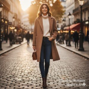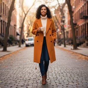 - Autumn Stroll: Throw it over a contrasting knit turtleneck and pair it with tall boots for a stylish outfit ready for crisp autumn weather.