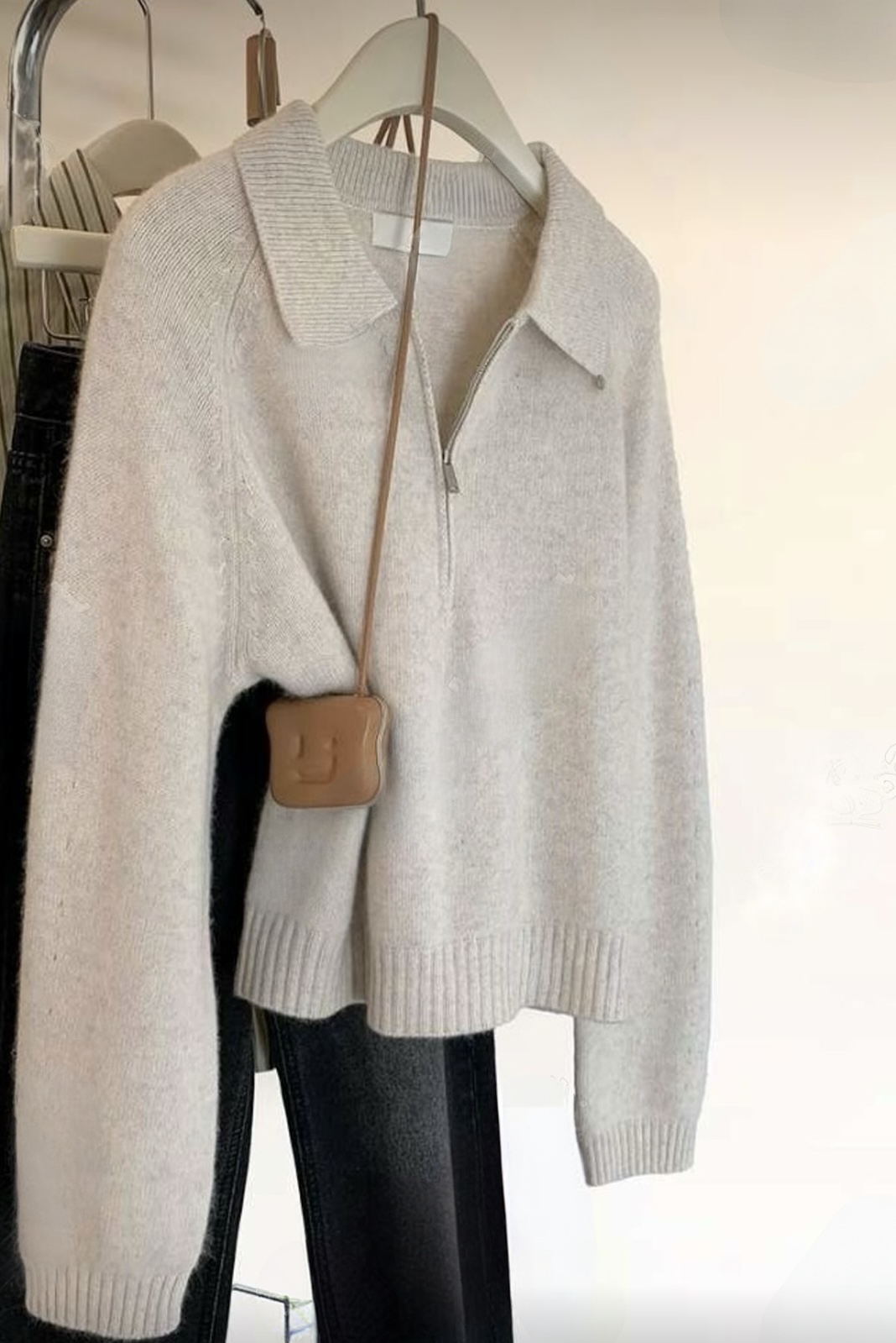 - Chic Half-Zip Design: The classic polo collar meets a modern half-zip detail, allowing you to customize your look. Zip it up for a cozy, structured feel, or pull it down to reveal a layered tee or necklace, adding a touch of relaxed charm.