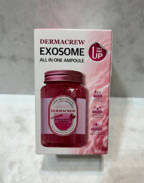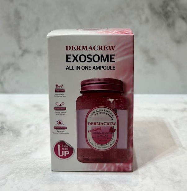 The DermaCrew Exosome All-in-One Ampoule is a high-performance Korean-inspired skincare product designed for intensive skin regeneration and repair. It is formulated to firm skin, tighten pores, and boost collagen production using a complex of advanced ingredients.Â