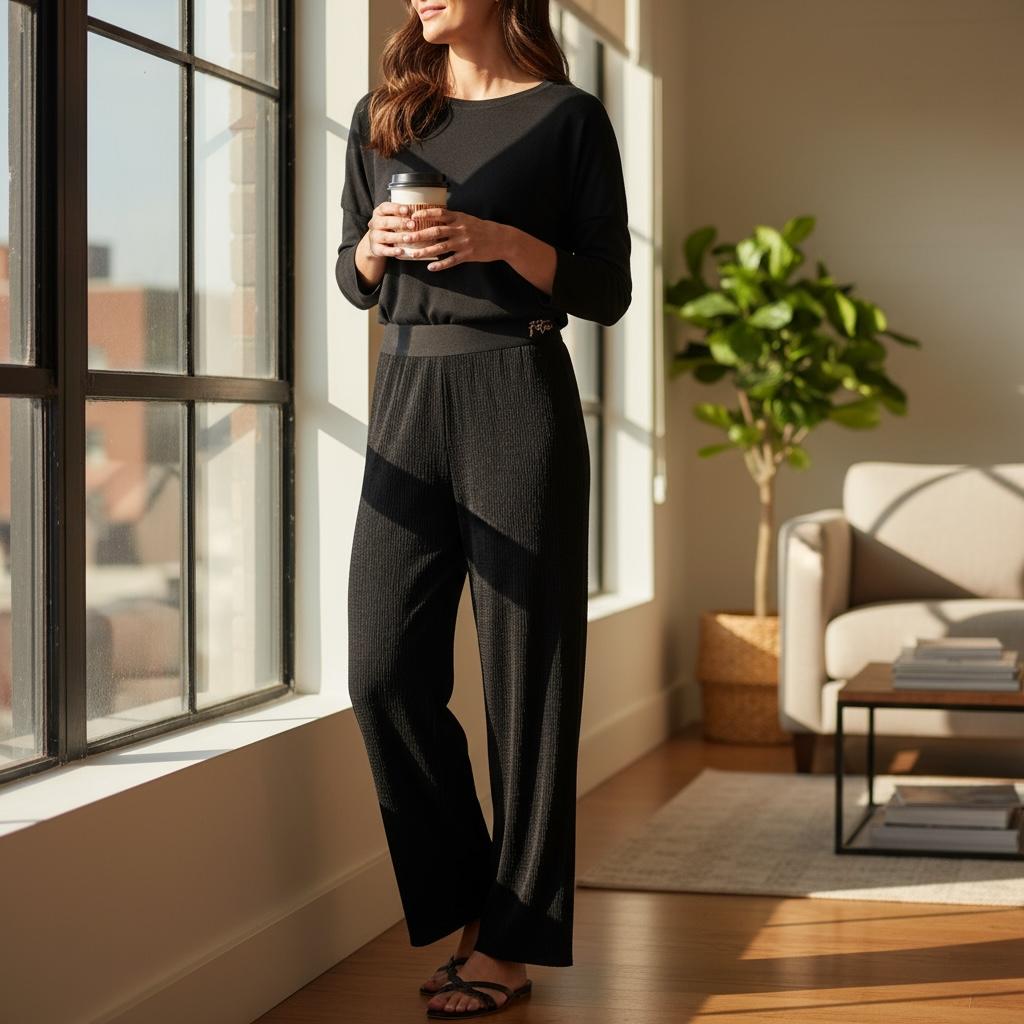 Versatile Styling: The sleek black color and refined design make these pants incredibly versatile, perfect for pairing with a simple tee for a cozy lounge look or a stylish top for a casual chic ensemble.