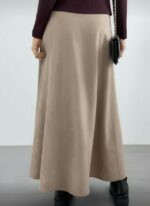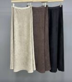 This elegant A-line midi/maxi skirt is a perfect addition to your autumn and winter wardrobe, offering a luxurious look with comfortable wearability.