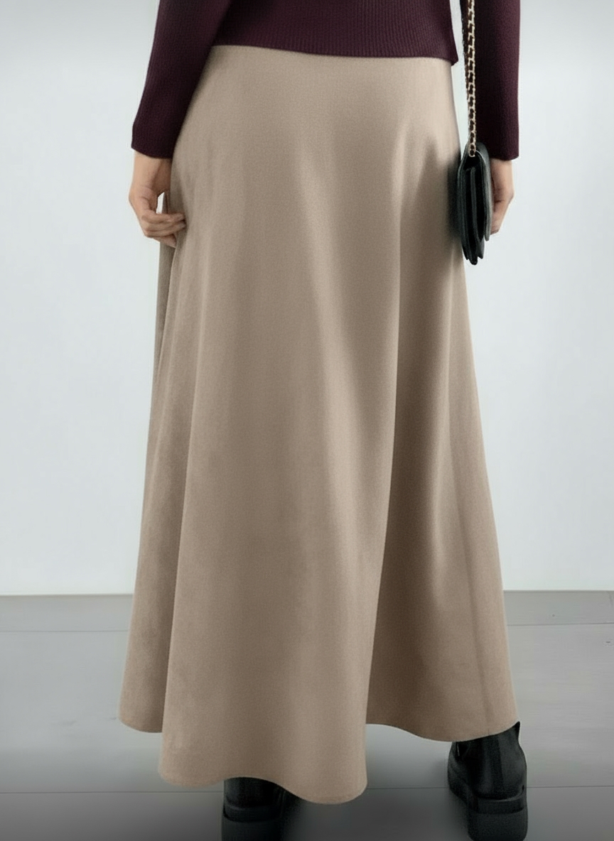 Step into sophisticated texture and effortless elegance with our Suede-Look A-Line Maxi Skirt. Perfect for adding a rich, touchable dimension to your wardrobe, this skirt drapes beautifully and moves with a subtle, luxurious flow.