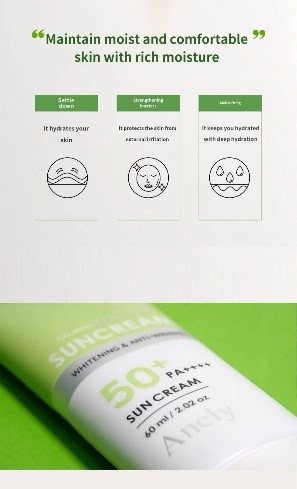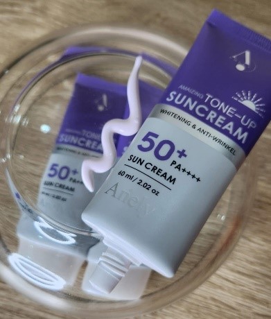 Anely Amazing Tone Up Suncream is a Korean suncare product that provides powerful UV protection with an SPF50+ PA++++ rating and offers a brightening, skin-toning effect to create a naturally radiant and luminous complexion. It features a lightweight, hydrating formula that applies smoothly without a greasy or sticky feel, serves as an excellent makeup primer, and is formulated to be gentle and suitable for sensitive skin types.